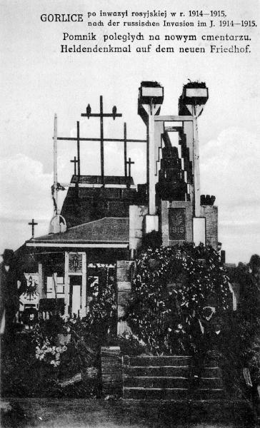 Fot.3 Pomnik i kaplica projektu R. Motki, (pocztówka ze zbiorów Mirosława Łopaty)