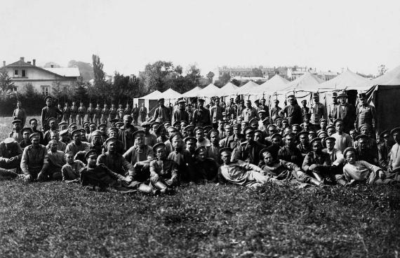 Fot. 6. Obóz jeńców rosyjskich, którzy budowali cmentarz nr 91. (fot. ze zbiorów Sz. Mikruty, obróbka cyfrowa B. Bartu¶)