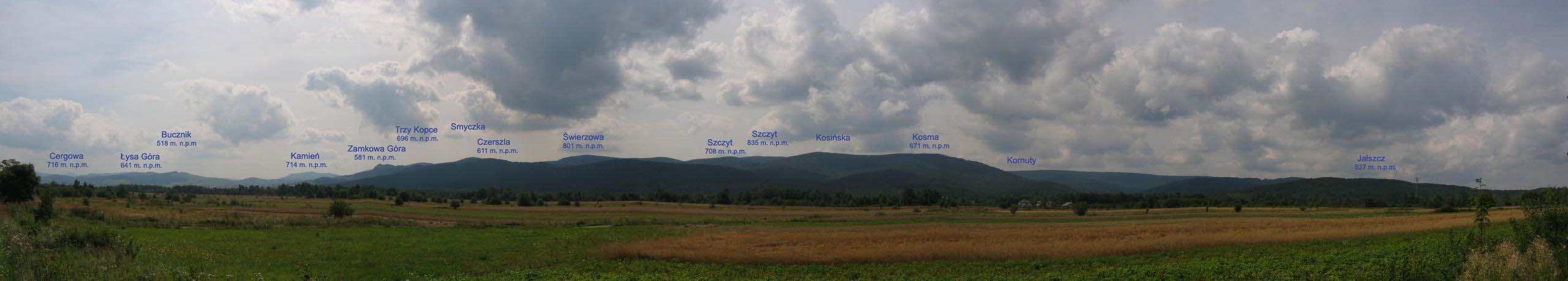 Panorama z Sieniawy. Droga Gorlice - Nowy Żmigród. Współautorem opisu jest Dariusz Zając