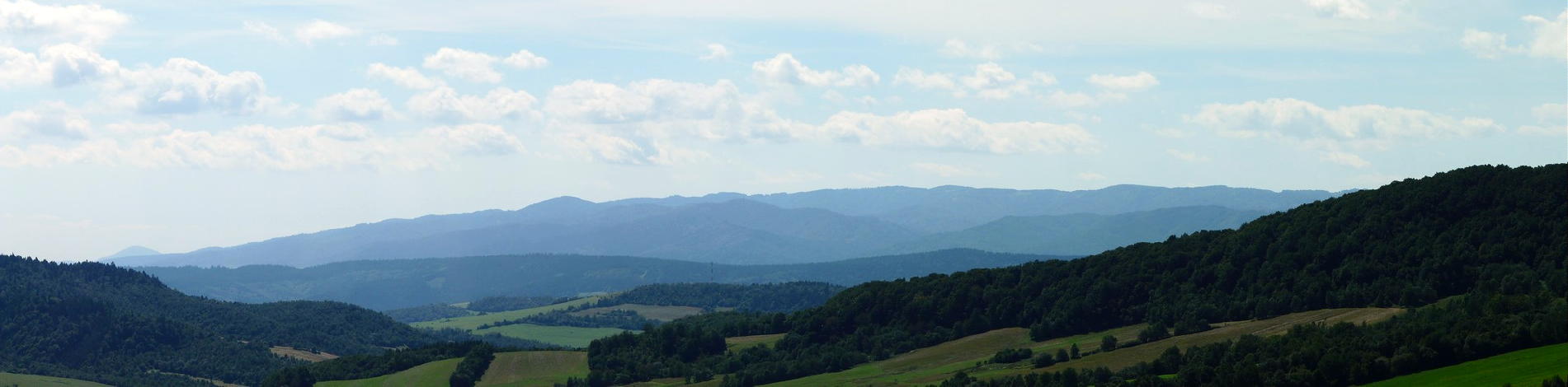 Widok z przełęczy między Hrbem a Płazinami na masyw Cergova