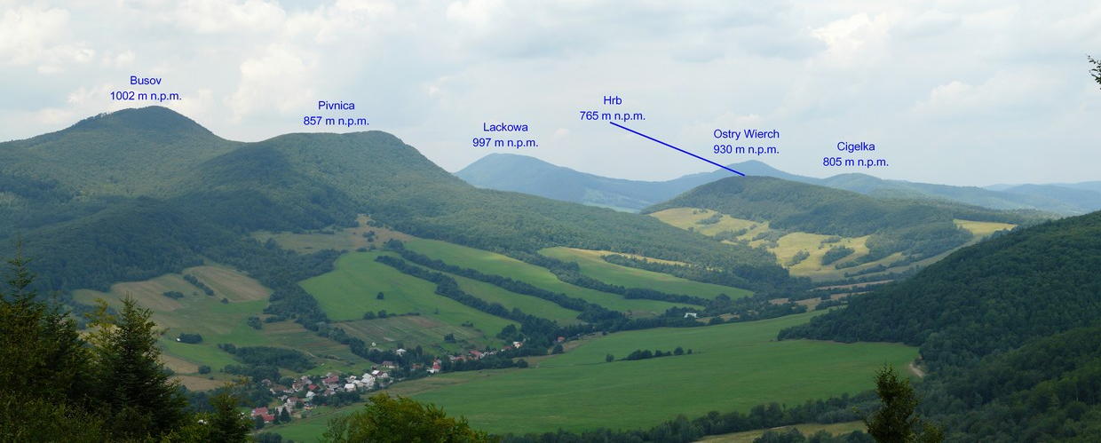 Widok z północnych stoków Magury Stebnickej na Busov i Lackową