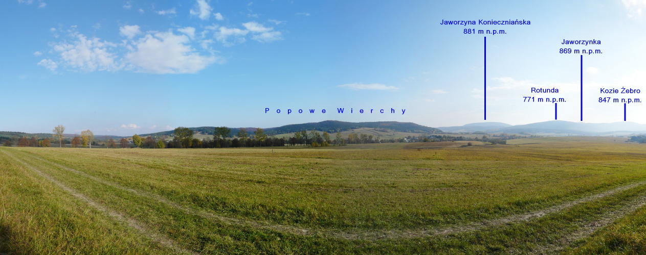 Widok z drogi Przełęcz Małastowska-Gładyszów w kierunku południowo-wschodnim