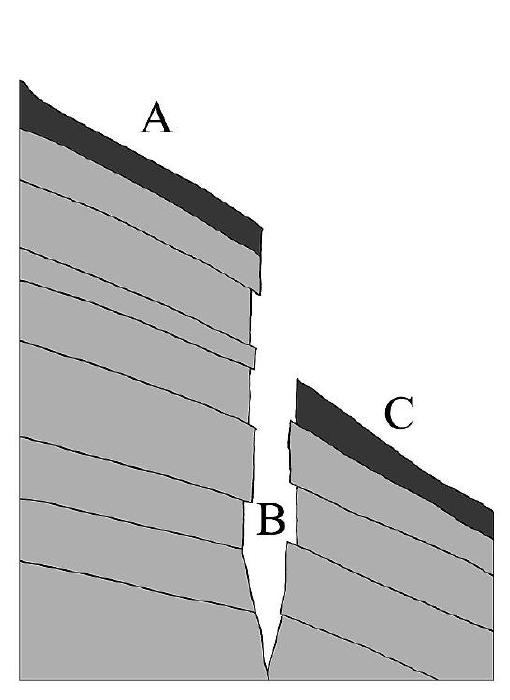 Il. 17 Magurycz Duży. Przekrój przez hipotetyczny kształt osuwiska podszczytowego, dającego początek późniejszej eksploatacji piaskowca. Rys. T. Łopatkiewicz