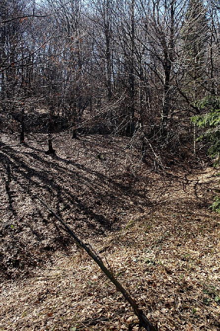 Il. 23 Magurycz Duży. Pozostałości sztolni (ułyci) zbudowanej przez kamieniarską spółkę Stefana Felenczaka (1), 18 kwietnia 2010