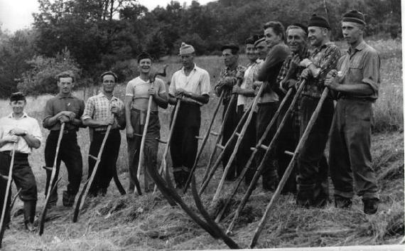 Sianokosy na Nieznajowej - część spośród mężczyzna kosiła również w PGR Jasionka