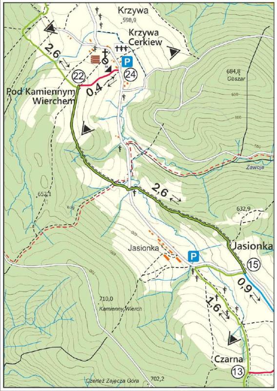 "Opis trasy 15-22, to fragment "Przewodnika po Śnieżnych Trasach" stworzonego przez Stowarzyszenie Rozwoju Sołectwa Krzywa. Wszelkie prawa zastrzeżone. Opublikowano za zgodą Stowarzyszenia Rozwoju Sołectwa Krzywa. www.snieznetrasy.pl"